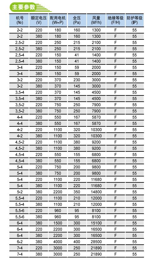按叶轮直径分为8个机号,依次为2、2.5、3、4、5、6、7、8。按电机分单相和三相。